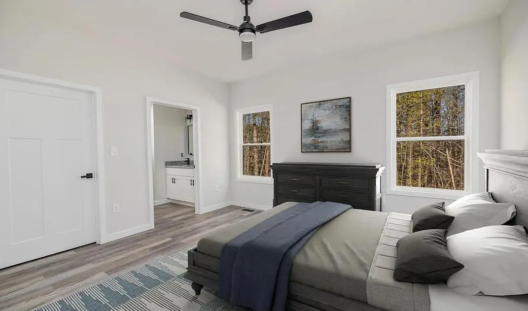 Description: This stunning, recently constructed 3-bedroom, 2-bathroom home by offers the perfect blend of efficiency and elegance on one convenient level. The thoughtful, open-concept design is anchored by a chef-inspired kitchen, featuring durable vinyl plank flooring, white cabinetry, bright granite countertops, and a generous center island—ideal for entertaining and daily life. The home provides bright, spacious bedrooms, including a private primary suite. Built with TruNorth’s signature commitment to quality, this low-maintenance residence features a welcoming covered back deck and modern finishes throughout.